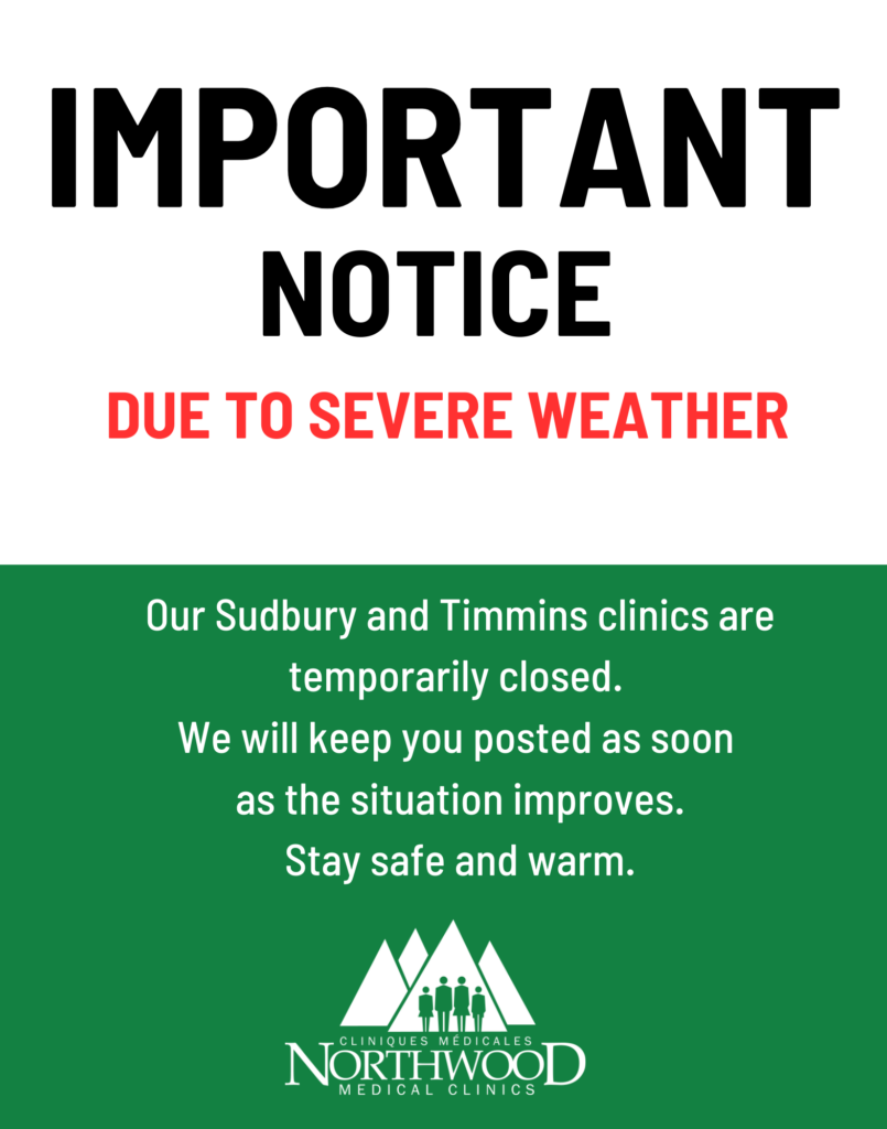 If unable to see your family doctor in a timely manner, you are welcome to seek care at Northwood Medical Clinics. Your results will be sent to your family doctor for ongoing care.